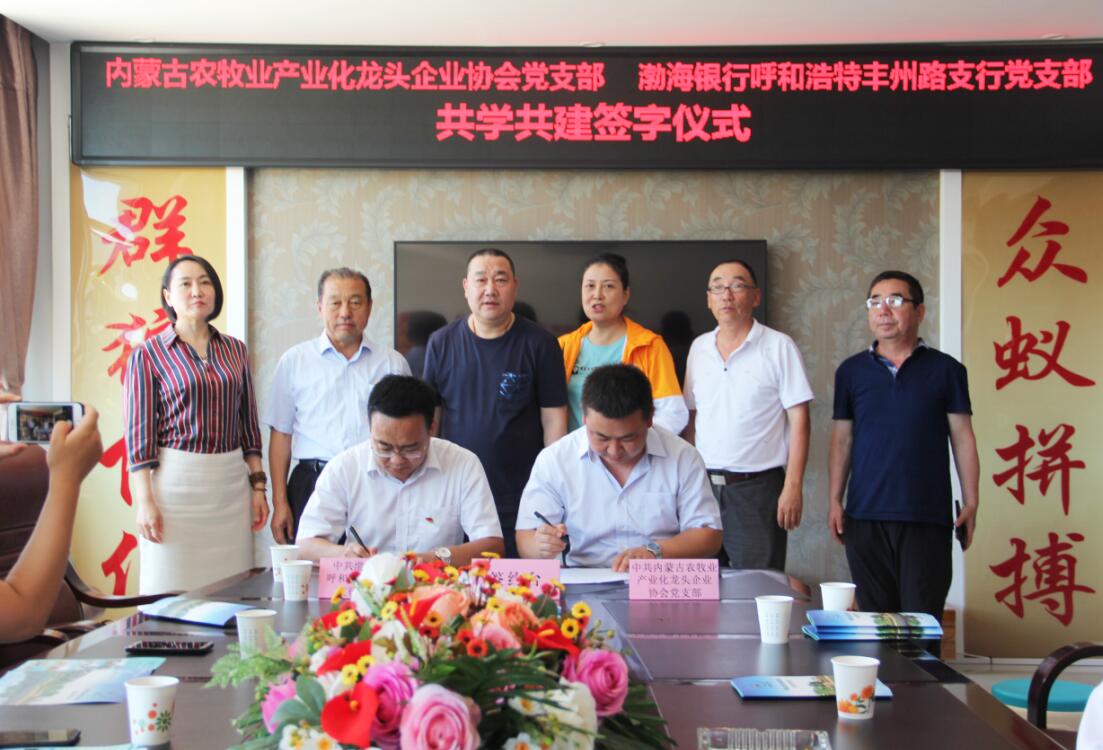 活動過程中,為創(chuàng)造性地推進黨組織“共學(xué)共建”結(jié)對工作,圍繞新時代黨的建設(shè)總要求,內(nèi)蒙古農(nóng)牧業(yè)產(chǎn)業(yè)化龍頭企業(yè)協(xié)會黨支部和渤海銀行呼和浩特豐州路支行黨支部簽訂了《共學(xué)共建結(jié)對協(xié)議》。通過結(jié)對共建,在弘揚社會正能量、加強愛國主義教育等方面樹立新典型,力爭在構(gòu)建銀企合作關(guān)系等方面取得新突破。