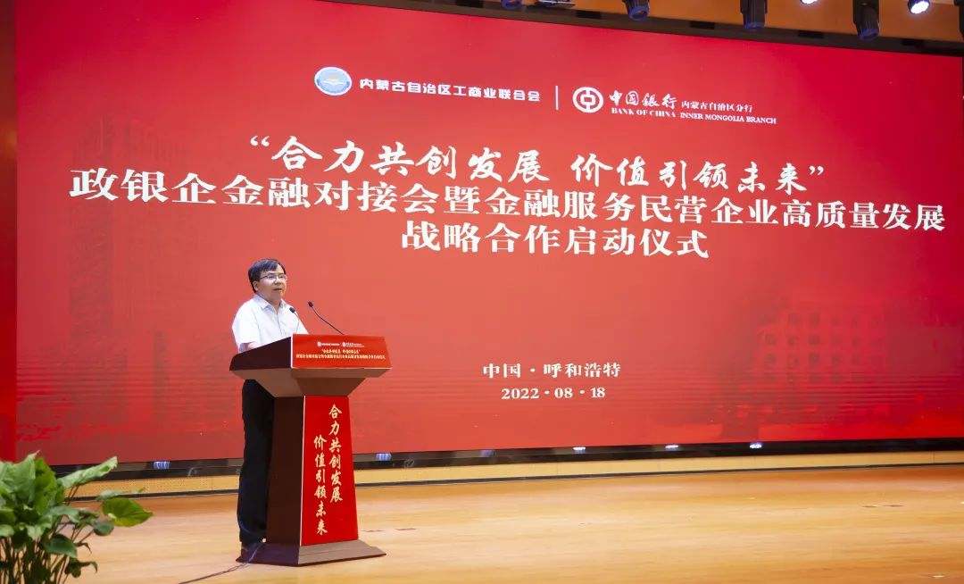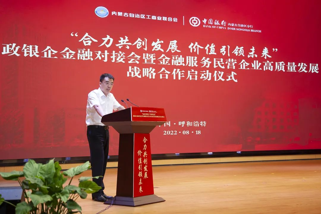 胡文勇行長在開場致辭中表示,一直以來,自治區(qū)工商聯(lián)充分發(fā)揮統(tǒng)戰(zhàn)性、經(jīng)濟(jì)性、民間性綜合優(yōu)勢,團(tuán)結(jié)和帶領(lǐng)廣大非公有制經(jīng)濟(jì)人士,與時(shí)俱進(jìn),大膽創(chuàng)新,努力實(shí)踐,推動(dòng)優(yōu)化營商環(huán)境,促進(jìn)我區(qū)非公有制經(jīng)濟(jì)又好又快發(fā)展,為全面建設(shè)小康社會(huì)、構(gòu)建和諧社會(huì)作出重要貢獻(xiàn)。作為唯一一家持續(xù)經(jīng)營超過百年的國有大行,中國銀行秉承“融通世界、造福社會(huì)”的崇高使命,將自身發(fā)展與地方經(jīng)濟(jì)發(fā)展緊密相連,主動(dòng)擔(dān)當(dāng)服務(wù)支持民營企業(yè)發(fā)展壯大的金融重任。未來,中國銀行內(nèi)蒙古區(qū)分行將繼續(xù)深耕細(xì)作民營經(jīng)濟(jì)領(lǐng)域的融資服務(wù),在普惠金融、科技金融、綠色金融等領(lǐng)域加強(qiáng)金融支持,緩解小微企業(yè)“融資難、融資貴”問題,助企紓困,風(fēng)雨同舟,為深化政銀企合作共贏發(fā)展貢獻(xiàn)新力量!