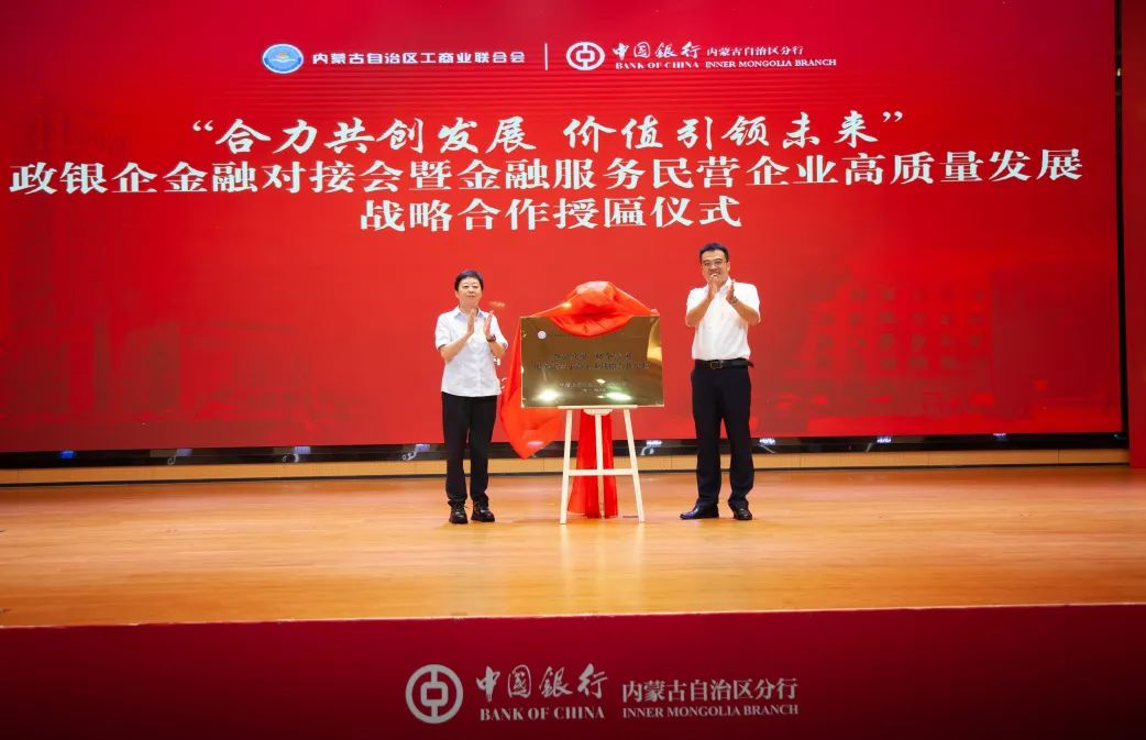 在與會(huì)人員的共同見證下,中國銀行內(nèi)蒙古自治區(qū)分行與自治區(qū)工商聯(lián)金融服務(wù)民營企業(yè)高質(zhì)量發(fā)展戰(zhàn)略合作正式啟航。