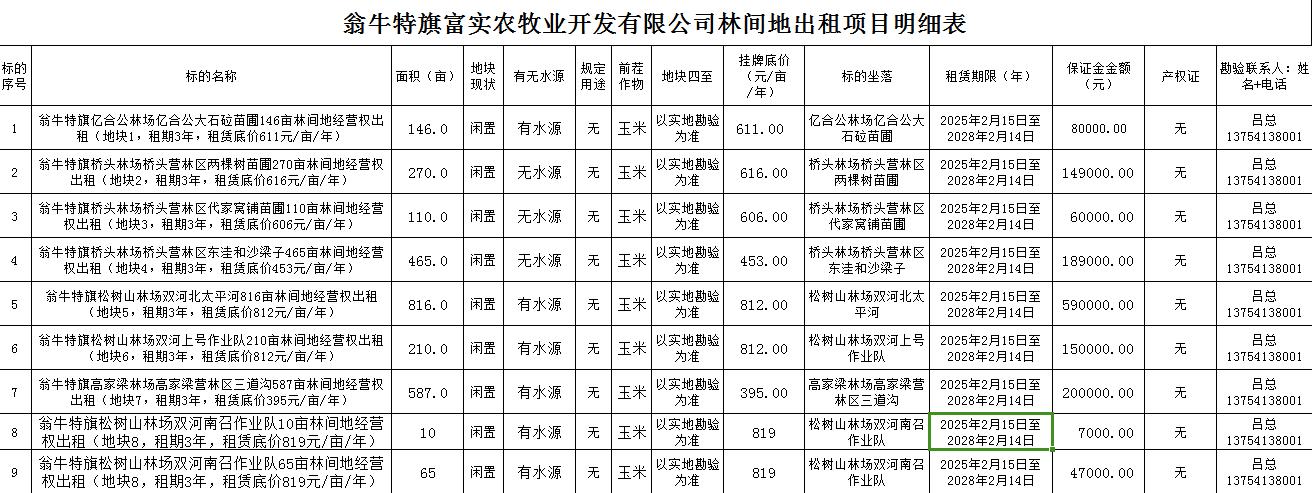 標(biāo)的坐落:赤峰市翁牛特旗詳見項目明細(xì)表