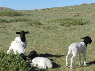 (5)繁殖性能強(繁殖率高:繁殖周期長,不受季節(jié)影響);杜泊羊可以在一年四季任何時期產(chǎn)羔,可達2年3胎;