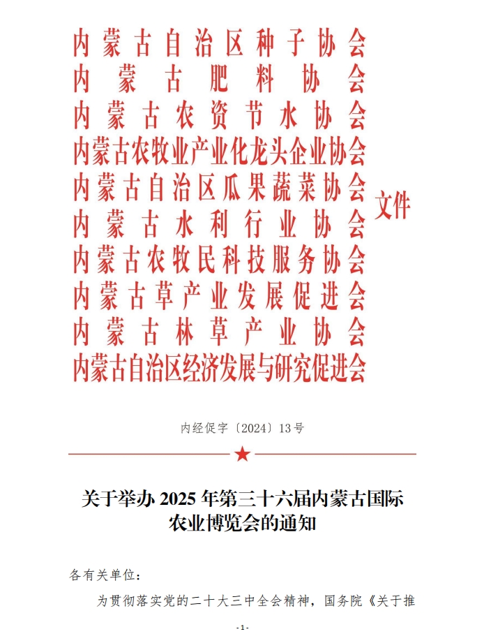 關(guān)于舉辦2025年第三十六屆內(nèi)蒙古國(guó)際農(nóng)業(yè)博覽會(huì)的通知